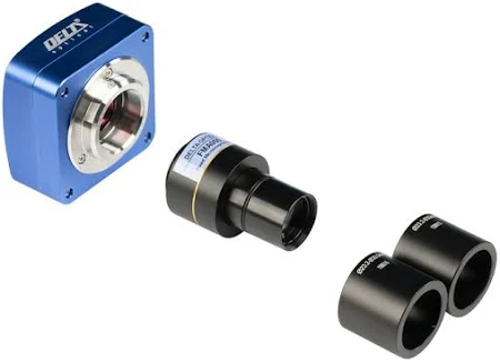 Głowica trinokularowa umożliwia równoczesne obserwacje i rejestrację. Kamera Delta Optical DLT-Cam PRO 6.3 MP USB 3.0 (3072 × 2048 px) przesyła płynny, 60 kl./s sygnał do komputera, wspierając pomiary i dokumentację.
